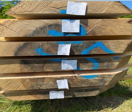 Holzart: Buche; Länge: 4,1 m; Breite Mittel: 0,59 m; DIVERSE Bohlen verfügbar; geschlagen: 11.2024; aufgesägt: 06.2025; besäumt: NEIN